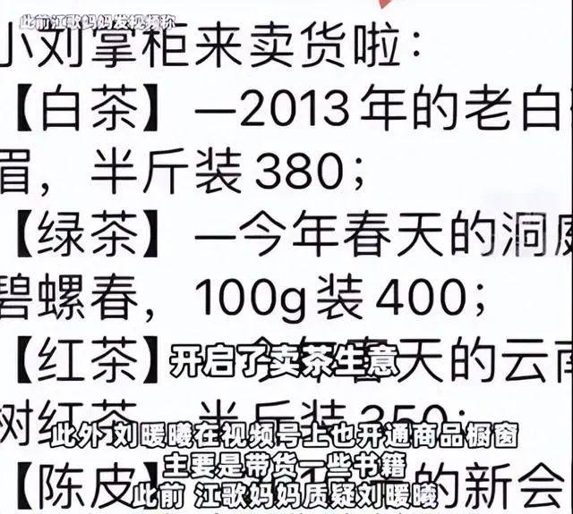 但与此同时,据鲸视频报道,有网友发现刘暖曦(刘鑫)也曾在视频号上直播带货,并开通商品橱窗,带货一些书籍。此前,江歌妈妈曾公开质疑刘暖曦在利用江歌案的热度在粉丝群里卖茶叶。据潮新闻,一头干练的短发,身穿蓝色条纹短袖衬衫,10月9日晚上临近8点,江歌妈妈江秋莲坐在一把护腰坐椅上,面带笑容,提前出现在直播镜头前。54岁的她开启了人生中首场直播。这场直播从晚上8点持续到11点,共吸引1518万网友观看,同时在线观众数量一度达到超10万;3小时内,她卖出近6万件商品,销售额超百万元。“不知道眼睛该往哪看,以前面对那么多媒体镜头都不紧张,现在真有点紧张。”对于第一场直播,江秋莲感慨说,自己的手都出汗了。她用夹杂着山东口音的普通话逐个介绍商品:沙琪玛、无骨鸡爪、虾酱、油污净、纸巾……当晚,江秋莲的抖音橱窗上线23款商品,都是此前她曾发布视频推荐过的商品。“没有专业团队合作,只是草台班子。”此前,江秋莲回复称,自己是独立尝试直播带货,对于后续直播带货的频率,还没有具体计划。据中新经纬此前报道,江歌妈妈表示自己需要一份工作充实自己,和有足够的经济基础支持维权之路。她还表示:“直播带货的目的同样是为了赚钱,但我会把选品和服务放在第一位,把赚钱放在第二位。”据九派新闻,近日,有网友发现刘暖曦也曾在视频号上直播带货,并开通商品橱窗,带货一些书籍。网友表示,刘暖曦是在视频号里直播的,除了直播外,她还开通了商品橱窗,主要带货一些书籍。此前,江歌妈妈曾公开质疑刘暖曦利用江歌案的热度在粉丝群里卖茶叶。“刘暖曦又利用江歌被害事件积攒人气,开启了卖茶生意。”