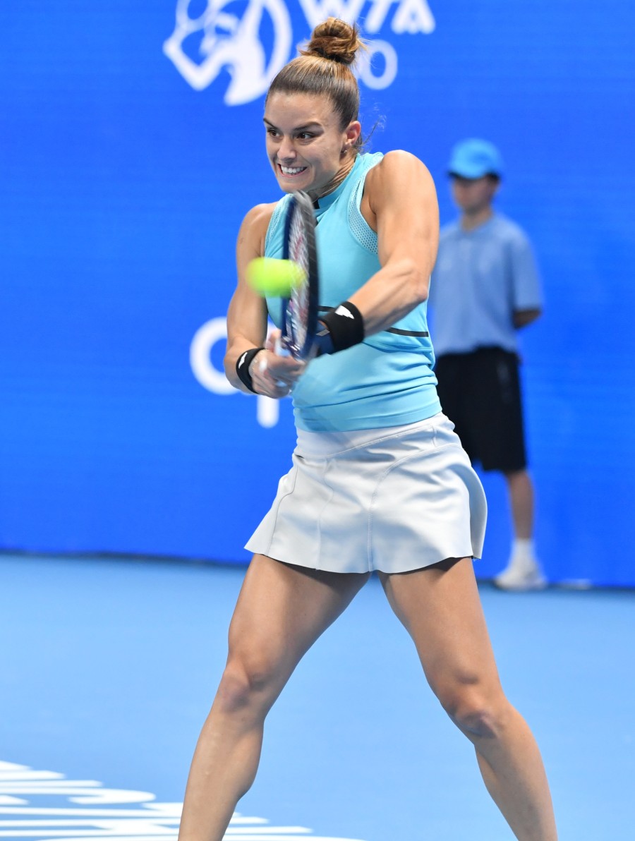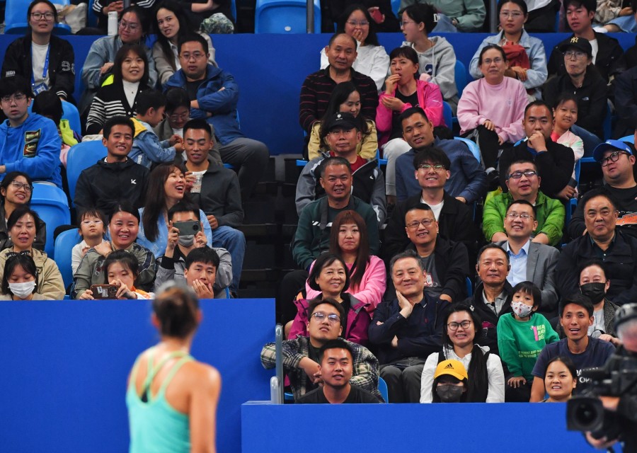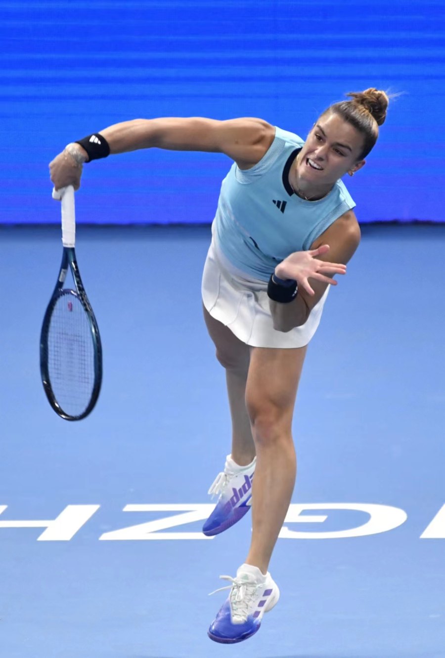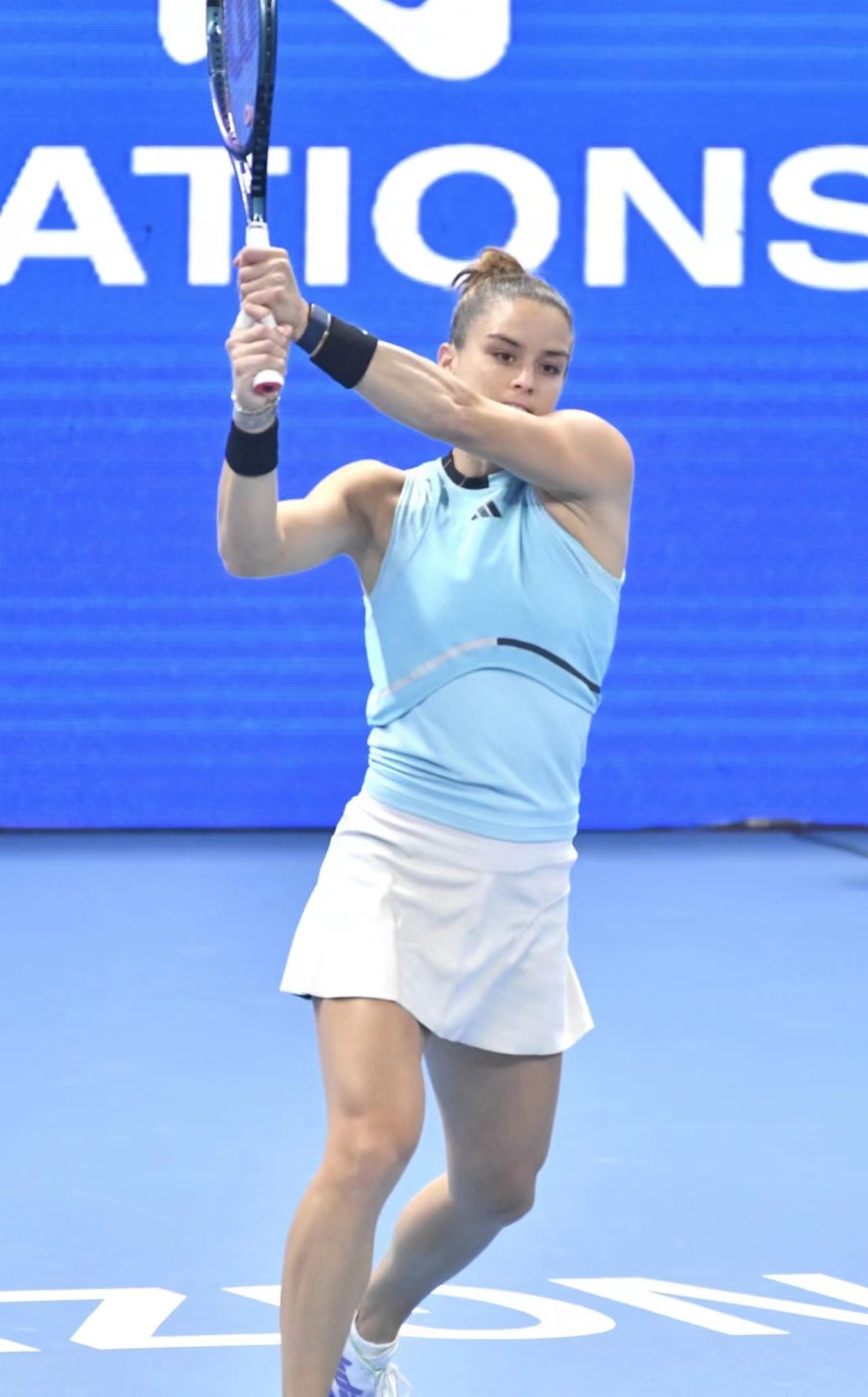 ▲ 10月11日,2023交通银行郑州网球公开赛进入正赛单打的第二轮比赛,中国选手郑钦文对战希腊萨卡里