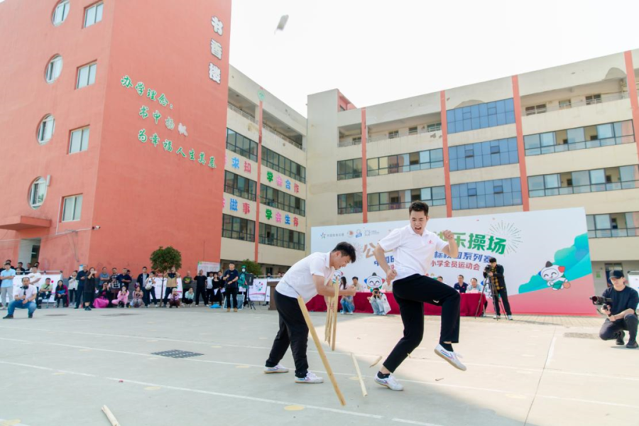 开幕式上,古城小学同学们表演的曳步舞和郑州大学体育学院裁判员团队带来的武术表演,吸引了现场所有人的目光,大家纷纷喝彩。当优胜旗入场,一句句振奋人心的口号和一张张精神饱满斗志昂扬的笑脸,点燃古城小学的操场。
