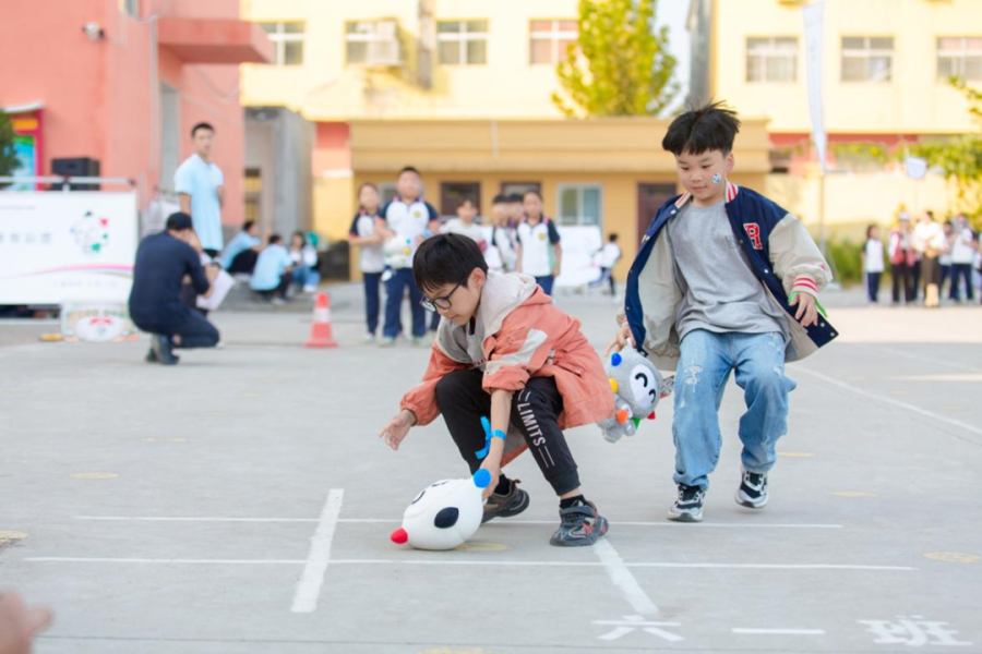 据了解,在中国田径协会专家的指导下,在郑大体院教师的协助下,本次全员运动会设立了救援乐小星、快乐操场竞速、乐小星棋王赛、接力跑以及头上前抛实心球五个比赛项目,项目集趣味性、竞技性为一体。同时,各项目结合学生年龄特点,打破年级和班级界限,尽可能地让更多的孩子都参与进来。据了解,古城小学共有200人次参与到活动中来,人人都是运动员,班班都是啦啦队。古城小学校长王凯介绍,古城小学之前仅有1副篮球架,4个室外乒乓球台,1位体育教师,上课内容比较单一。“体彩中心送来的体育器材、两个体育老师给我们学校体育课带来了更为丰富的内容,这次的运动会也给同学们搭建了展现实力挥洒汗水的舞台。”