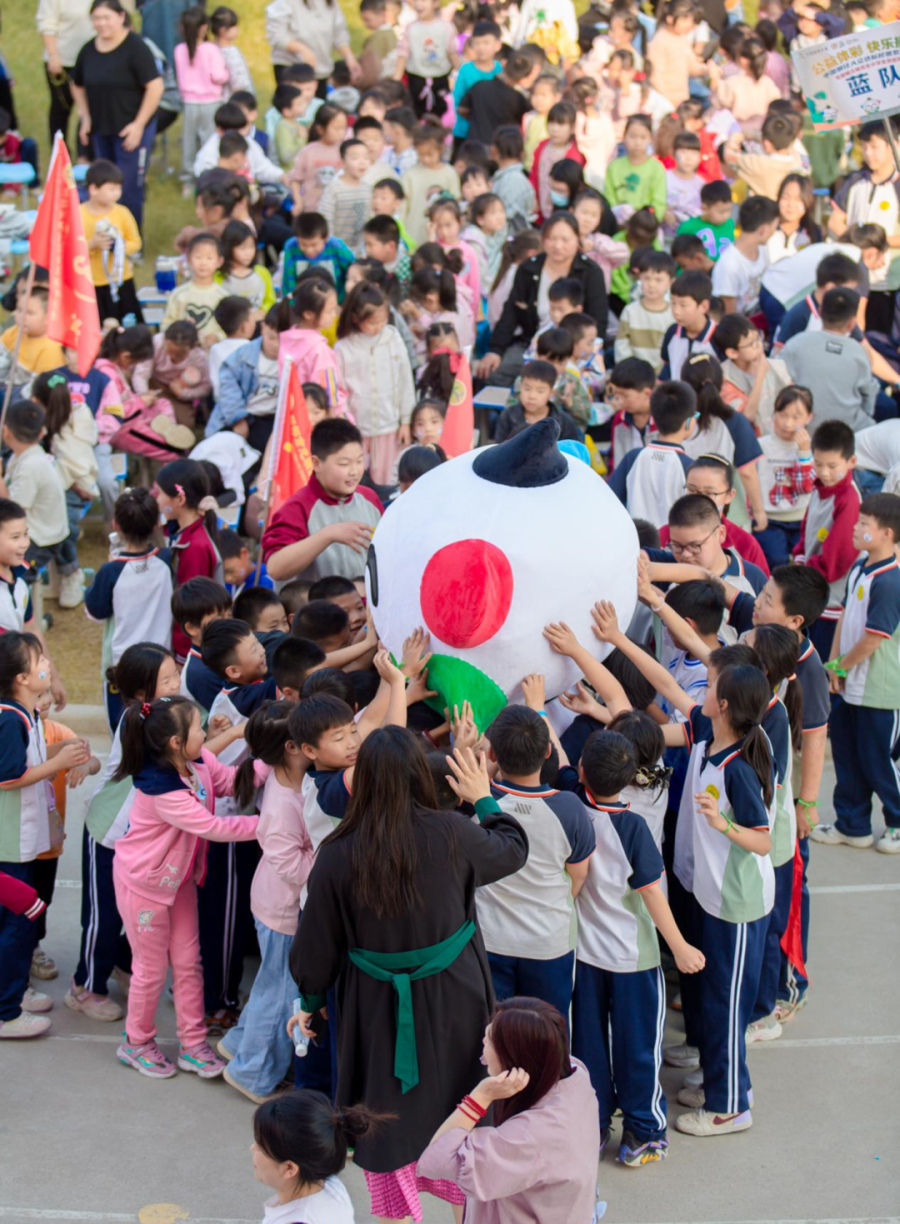 场外的老师们也加入到这场趣味运动之中,他们有的在草地上为孩子们呐喊鼓劲,有的打开手机记录孩子们的精彩瞬间。可爱的乐小星人偶一出场,就吸引了所有孩子们围绕在它身边,成了现场的“超级明星”。在绿色的草地上,乐小星为孩子们助威打气,整场运动会热情高涨气氛热烈,加油声此起彼伏,汇聚成欢乐的海洋。运动员代表六年级二班的赵治吏,赛后他激动地说:“我参加的是乐小星棋王赛,我特别特别开心,大家都很兴奋,因为之前我们的小团队训练了好久,也配合了好久,感觉友情收获到了,快乐也收获到了,希望以后还能参加这样的运动会。”