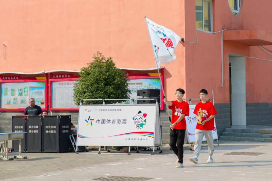据河南省体彩中心副主任董小卫介绍,古城小学今天的校园运动,是总局体彩中心携手中国田径协会“大众达标校园系列赛”,试点在我省“公益体彩 快乐操场”受助学校开展的运动会,首次把体育课程培训引入到快乐操场项目中,因地制宜地帮助乡村学校的同学们增强体质,丰富了“公益体彩 快乐操场”的内涵,希望能进一步助力体教融合。