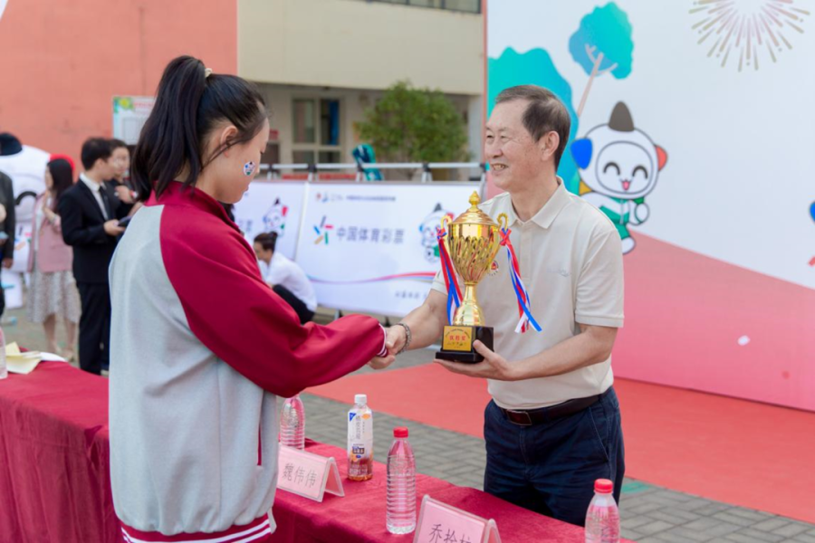 郑州大学体育学院体育教育系党总支书记董鲜玲说:“这是第二年跟河南体彩合作,今年我们充分准备,精中选优,选派了20个学生来进行为期四个月的支教工作,同时还为这次运动会选了8名学生进行开幕式表演以及裁判工作,希望他们的加入为这次运动会添彩。”来自郑大体院体育教育系大四的学生舍小文,来到古城小学已经支教一个多月,在运动会后,作为运动会的组织者和裁判长他感慨说到:“这次“公益体彩 快乐操场”全员运动会的成功举办让我体会到了赛事策划举办的不易,经过这次运动会,我的赛事策划能力和专业素养都得到了一定的提升,在比赛过程中看到孩子们脸上的笑脸,更是让我觉得我来到这里支教是正确的,为这次全员运动会所付出的努力也是有意义的”。