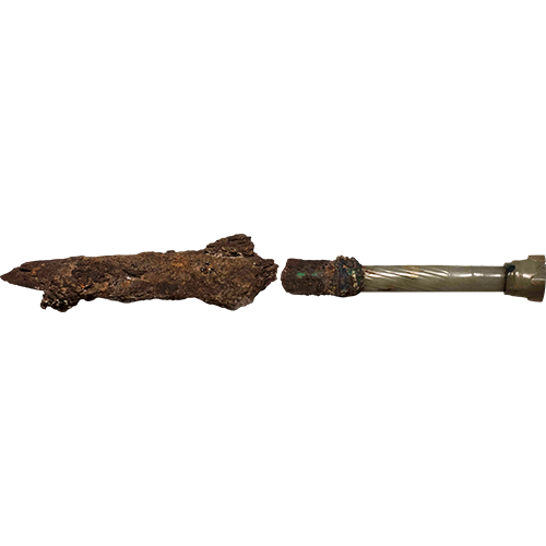 锈迹斑斑,整体变形,长三十多厘米,剑柄和剑身几乎完全分离。仅看样貌,谁能想到这把玉柄铁剑就是传说中的“中华第一剑”?