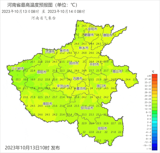预报来源:河南省气象台2023年10月13日12时预报