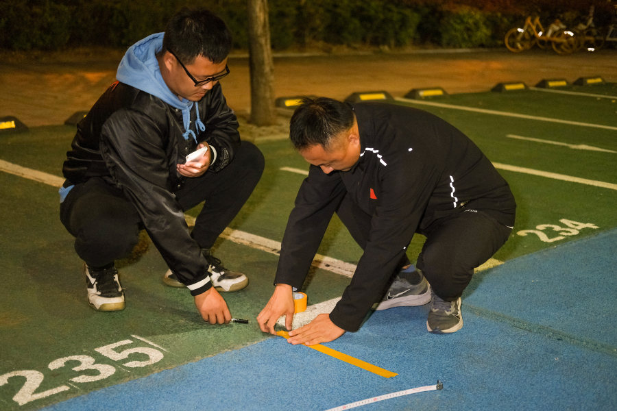 按照国际田径联合会规定,马拉松赛事的赛道丈量工作主要分为测前标定、测量、测后标定三个步骤。在对琼斯计数器完成校准后,闫俊涛开始正式的测量工作,他全程骑自行车,从位于CBD会展路的赛道起点出发,模拟运动员以最短的跑步路线,沿赛道前进至赛道终点。闫俊涛尽量保持匀速状态,每隔1公里就会停下来进行记录,同时助手要在相应的路段上定点、标记,直至赛道全部完成。