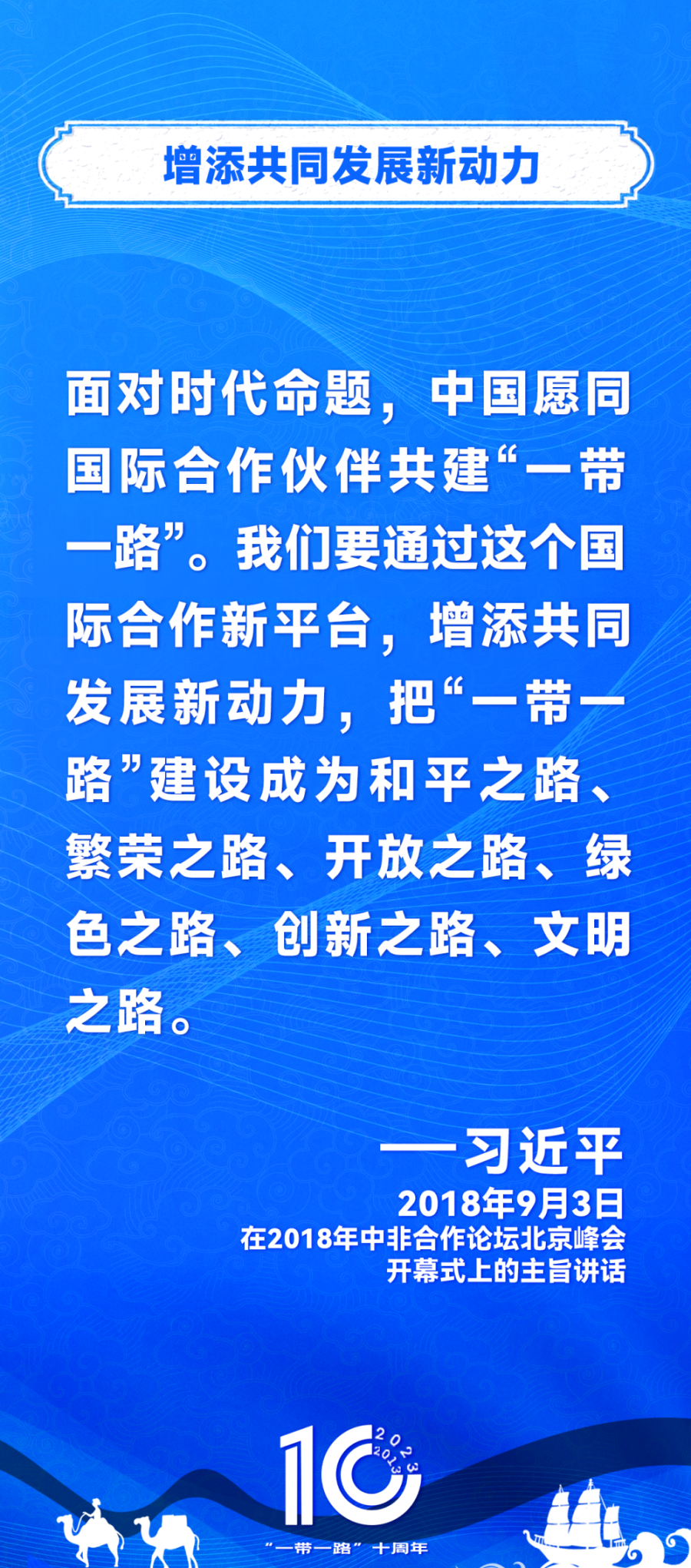 10年前,习近平主席提出共建“丝绸之路经济带”和“21世纪海上丝绸之路”,即共建“一带一路”倡议。过去10年来,习近平主席在多个场合发表讲话和署名文章,为世界描绘了共建“一带一路”互联互通、合作共赢的宏伟蓝图。