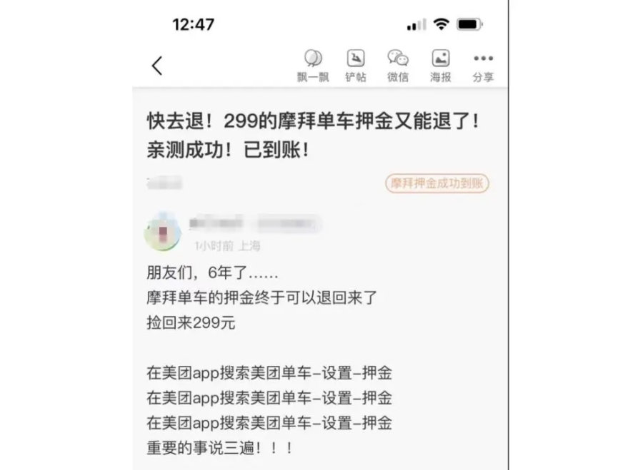 摩拜单车可以退押金了!不少人已成功退款