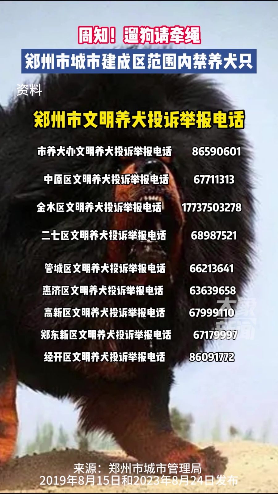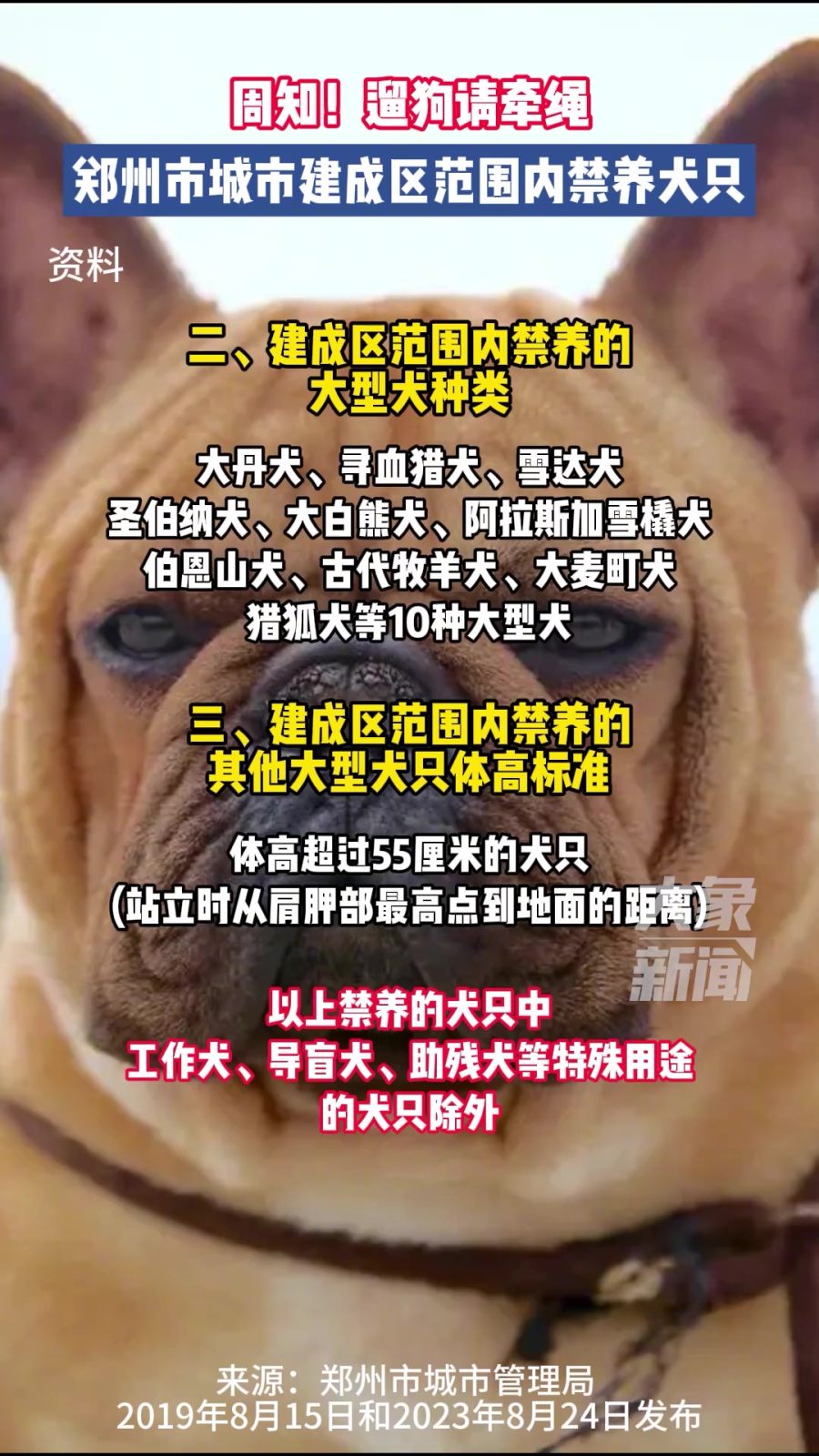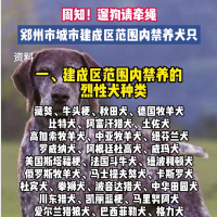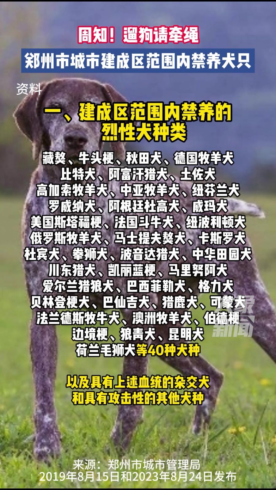 周知!遛狗请牵绳,郑州市城市建成区范围内禁养犬只名录