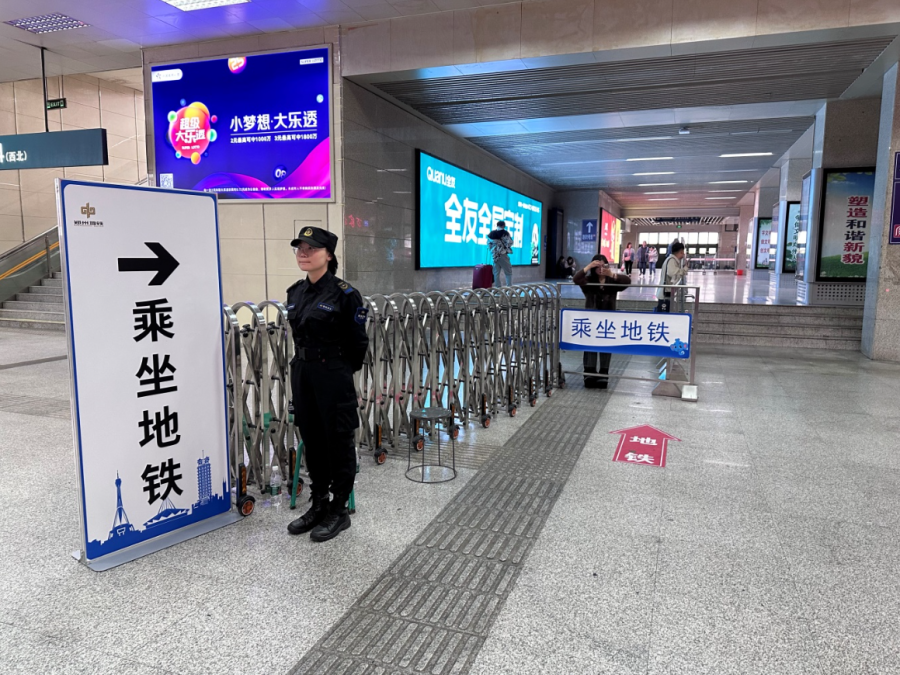 从郑州火车站下车后,只需找准国铁郑州站4号出站口向前直行,搭乘扶梯便可直接进入地铁车站站厅层,由此可免安检直接进入站内乘车。