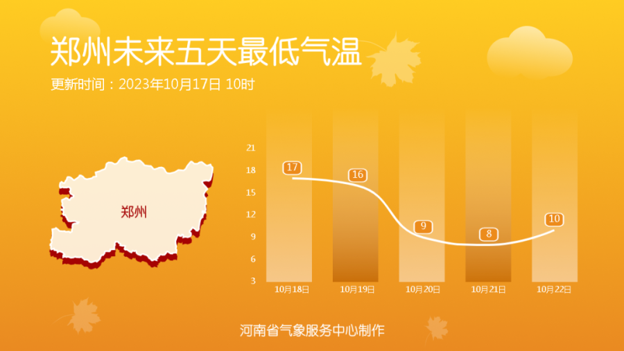 10月17日开始,立秋后影响最明显的冷空气上线,我国大部地区气温将陆续“跳水”,局地降温8至10℃。北方降温陆续展开,东北、华北、黄淮多地气温或创立秋后新低,东北最低气温或跌破冰点;南方大部在本周后期也将经历换季式降温。