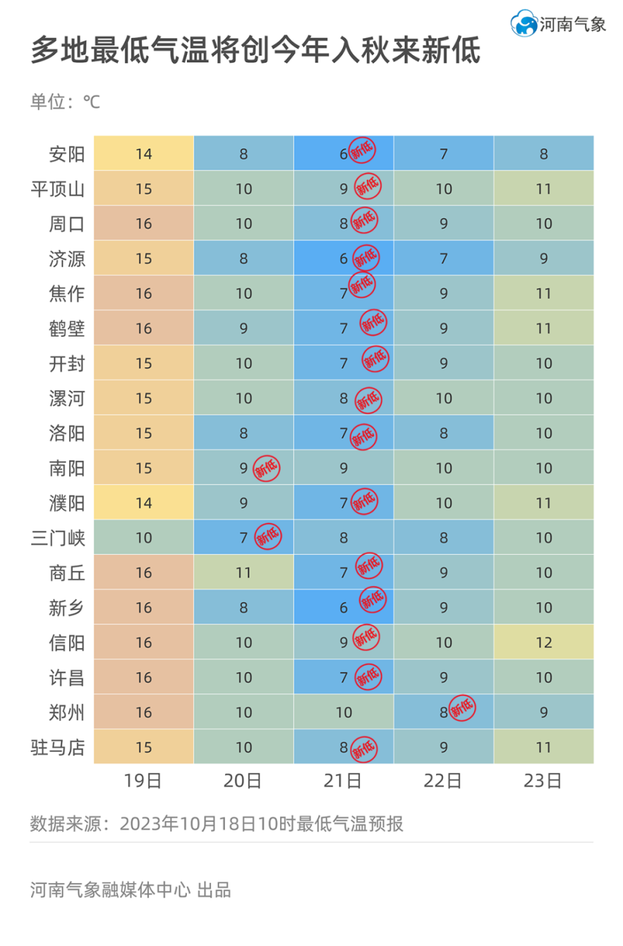 河南多地最低温将创今年入秋来新低!会下雪吗?风何时起?