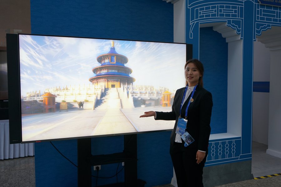 “人工智能绘画体验,就是通过触控屏作画和视频,结合AIGC技术创意,生成中国山水画和动画短片,渲染中国特色。”引导嘉宾入场,面带微笑讲解,这成了志愿者宋靖雯的工作常态。她的专业是人工智能,可谓“专业对口”。