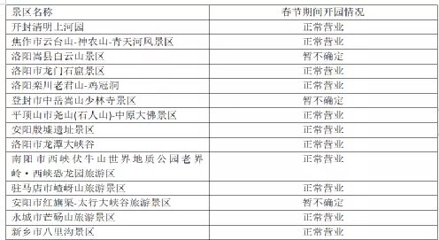 同时,为保障旅客安全,自1月13日起,芒砀山旅游区内宗教场所—— 芒山寺暂停开放;登封市中岳嵩山少林寺也于1月13日起,实施暂停对外开放、暂停集体宗教活动的“双暂停”管理措施,景区春节期间是否开放尚不确定。