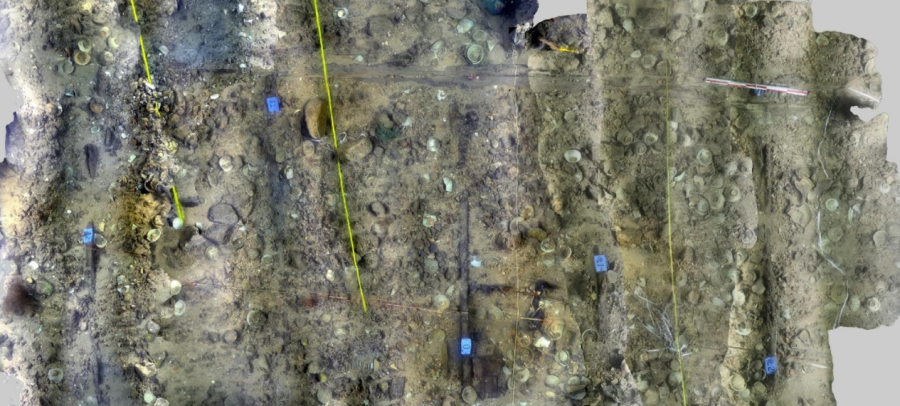 二号沉船:大量码放整齐的原木堆积