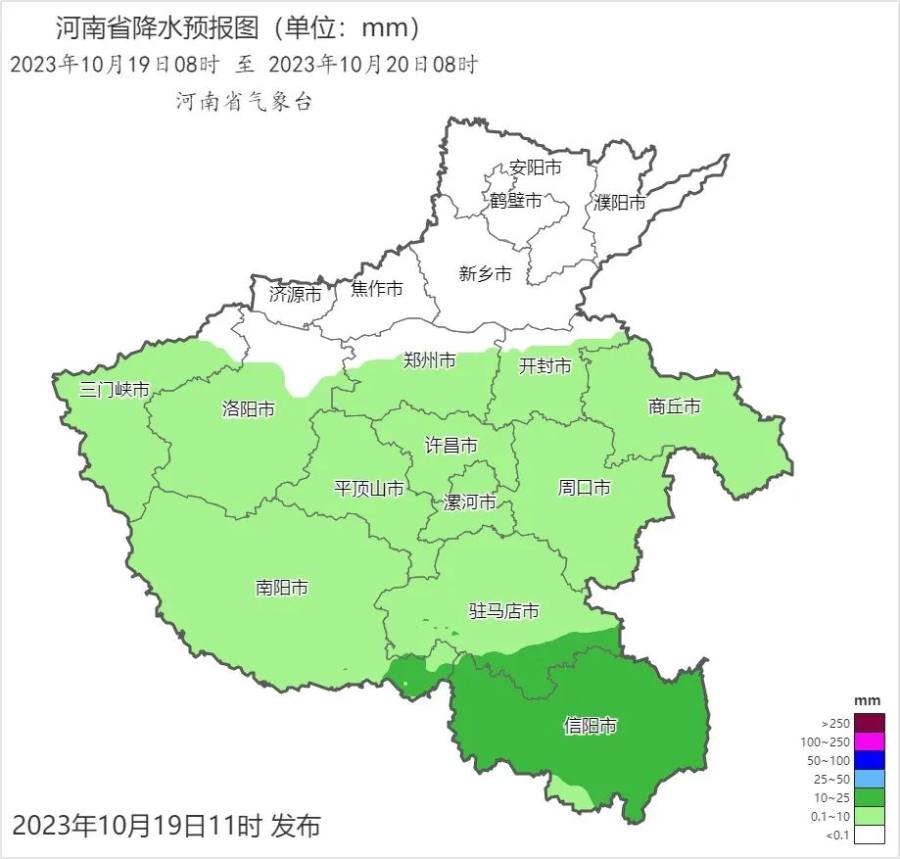 其中南阳东南部、驻马店南部、信阳部分县市有中雨