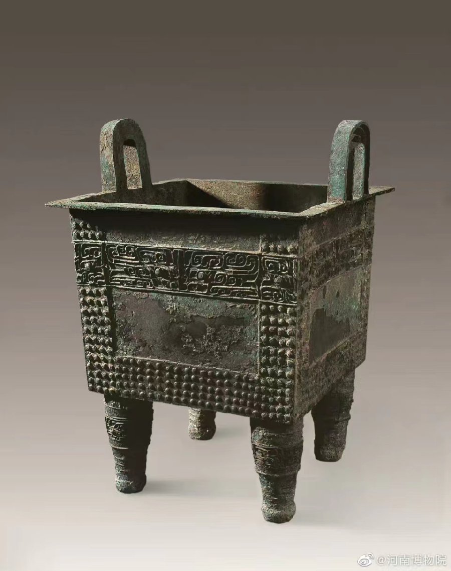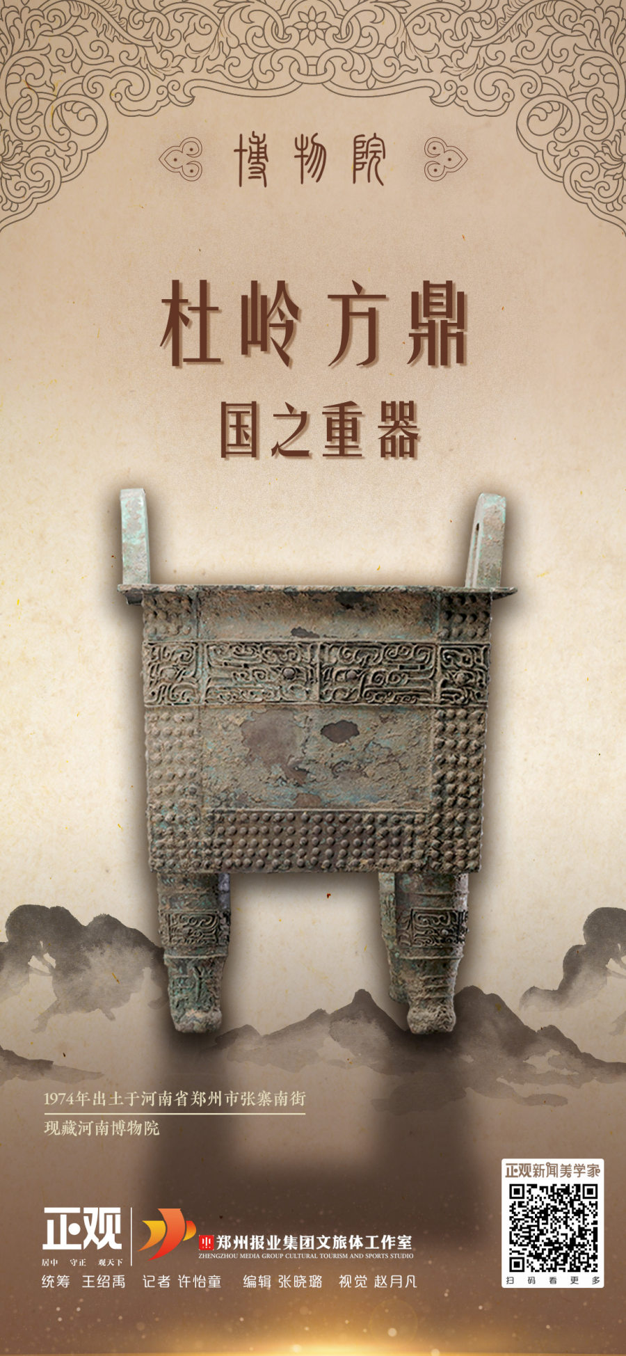 据河南省文物考古研究所研究员杨育彬介绍,1974年在河南郑州张寨南街出土了两件青铜方鼎,大的被命名为“杜岭一号”,小的被命名为“杜岭二号”,“杜岭一号”现存中国国家博物馆,“杜岭二号”被河南博物院收藏。