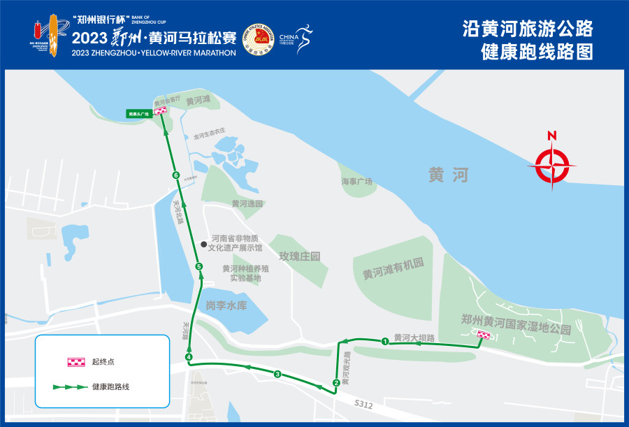 沿黄旅游公路健康跑采用全新设计的新赛道,起点位于郑州黄河国家湿地公园,终点位于南裹头广场,广大跑友可以近距离感受黄河魅力、体验黄河文化,比赛将于29日8:30正式开始,共有1000人参加。