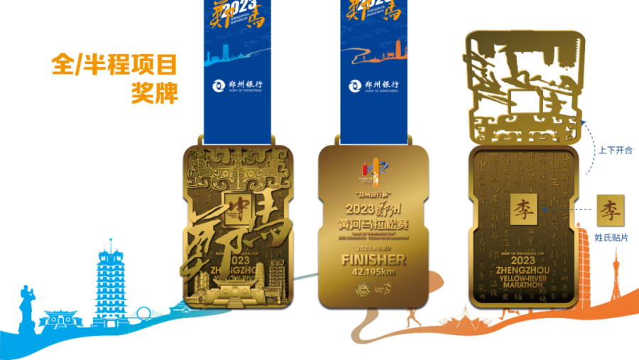 马拉松、半程马拉松完赛奖牌 | 于方寸之间,一眼郑州千年