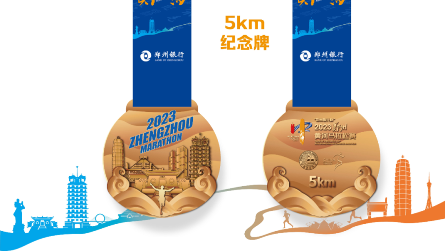 为了向每一位站上郑马起点、勇敢挑战自我的选手表达敬意,我们为本次郑马健康跑、家庭跑和沿黄旅游公路健康跑的选手准备了奖牌,并将关于郑州的城市印象、关于郑马的美好记忆都融于其中。