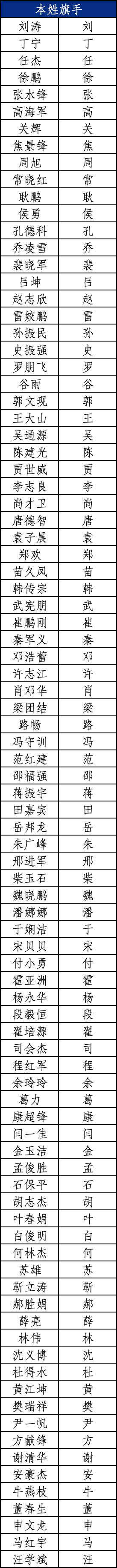作为一场以“姓氏马拉松”为特色的赛事,今年郑马“姓氏旗手”的招募一经启动,便得到了广大跑友的高度关注和积极报名。截止10月8日活动招募结束,我们共收到了近2000名跑友的报名信息。我们以他们的个人最好成绩为依据,选出了今年郑马的“姓氏旗手”。他们是——