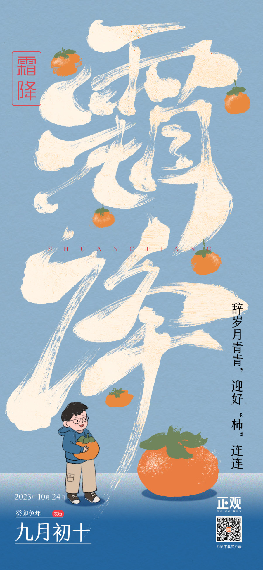 在真正的寒冷到来前,有这样一段金黄灿烂、充盈饱满的日子,真好。在此,祝你:好柿成“霜”,喜从天“降”!