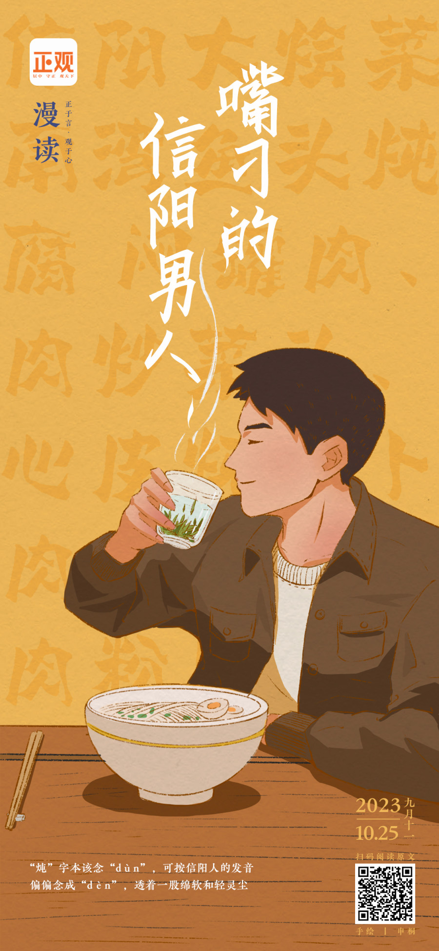 但是,别看信阳男人这么爱吃,却怎么吃都不发胖,这成了一个难解之谜。我猜这与他们饮食习惯有关,其一是由于他们的主食为米饭,不易分解为脂肪;其二是信阳男人总是手不离信阳毛尖,而常喝毛尖定能刷膘——两者共同造就了信阳男人的苗条身材。