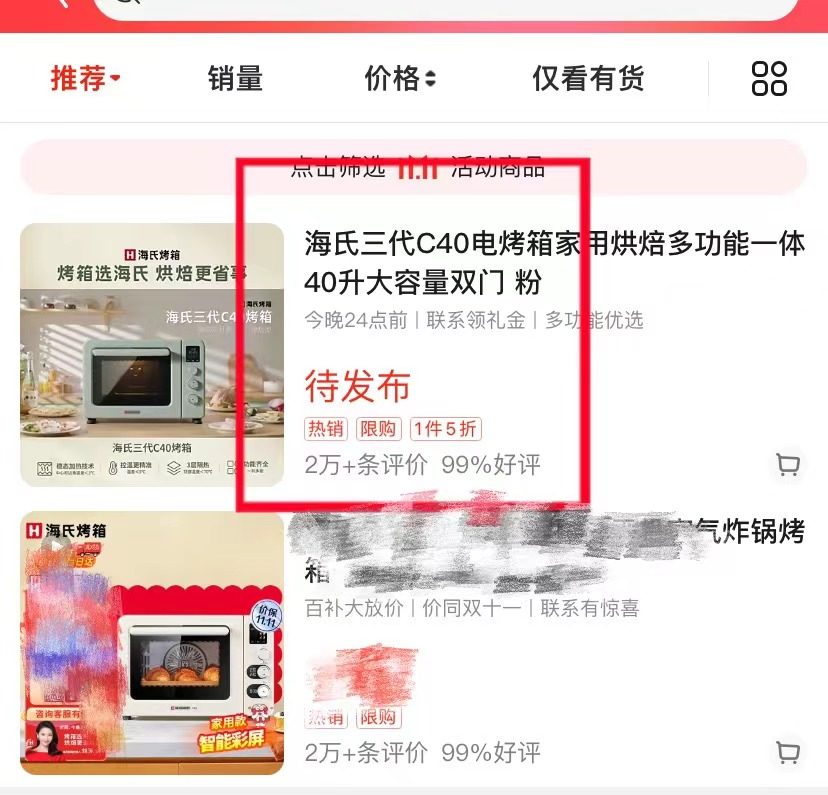 据网友爆料,引发此次三方争议的产品为“海氏三代C40升级款家用入门烤箱”,其正常售价为799元/台,在李佳琦直播间折扣售价为648元/台。但在京东自营渠道,同款产品促销价为639元/台。但目前,在京东自营店已不显示具体价格且无法购买,价格栏处于待发布状态。