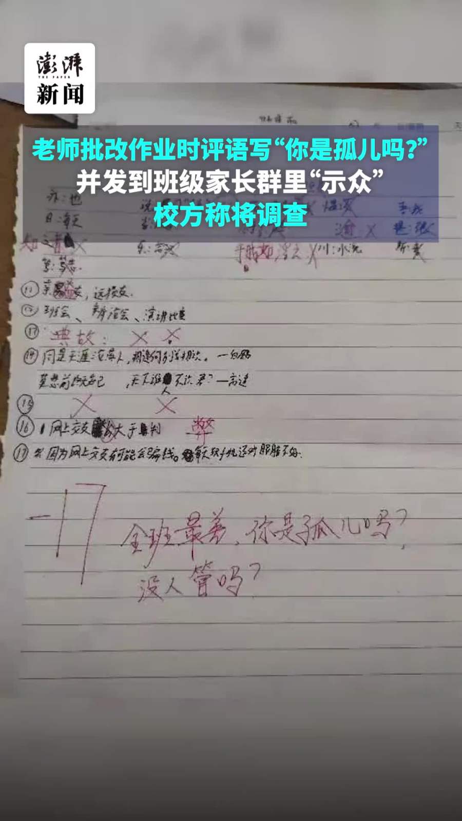 湖北一老师批改作业写评语“你是孤儿吗”,当地教育局:属实
