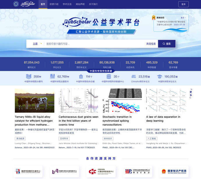 今天,由中国科学院等单位联合建设的PubScholar公益学术平台正式对社会公众开放。该平台首期整合集成了中国科学院的科技成果资源、科技出版资源和学术交流资源,目前通过平台可检索的科技文献资源量约1.7亿篇。
