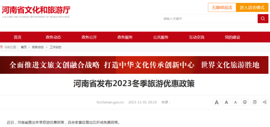河南省文化和旅游厅发布消息