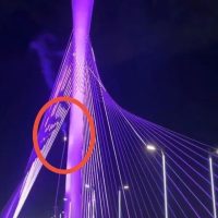 网传视频显示,石家庄一处地标性大桥斜拉索突然掉落还冒着火,事发河北石家庄复兴大街滹沱河特大桥。