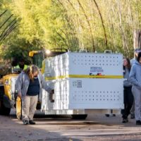 当天上午,华盛顿史密森学会国家动物园工作人员将三只装有大熊猫的特制“旅行包厢”、220磅(约合100公斤)竹子、饮用水及相关物资运上卡车。随后,载有“美香”“添添”和“小奇迹”的车队驶离动物园,前往华盛顿杜勒斯国际机场。