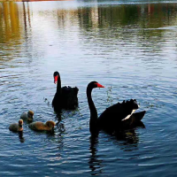 黑天鹅原产澳洲,2008年2月,一对黑天鹅飞临圆明园遗址公园,在这里繁衍生息。圆明园遗址公园发病区域内共栖息野禽15只,其中黑天鹅5只、绿头鸭8只、黑水鸡2只。