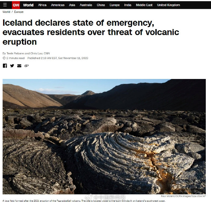 冰岛气象局数据显示,10日凌晨至下午2点间共记录了近800次地震,最浅的震源深度为3-3.5公里。该部门称,火山喷发可能会在“几天内”发生。