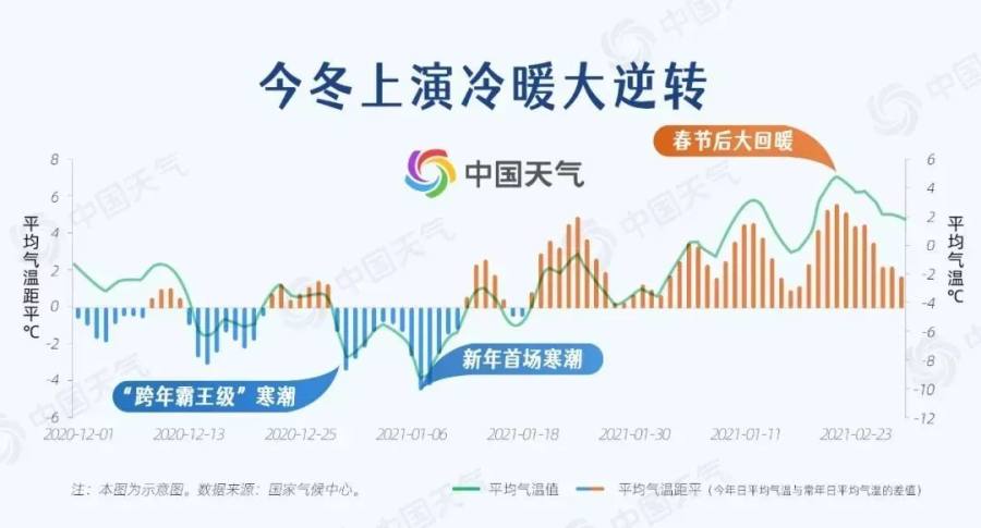 咱们可以回顾下2020-2021年冬季冷暖大反转,那是在与厄尔尼诺相反的拉尼娜事件背景下发生的。