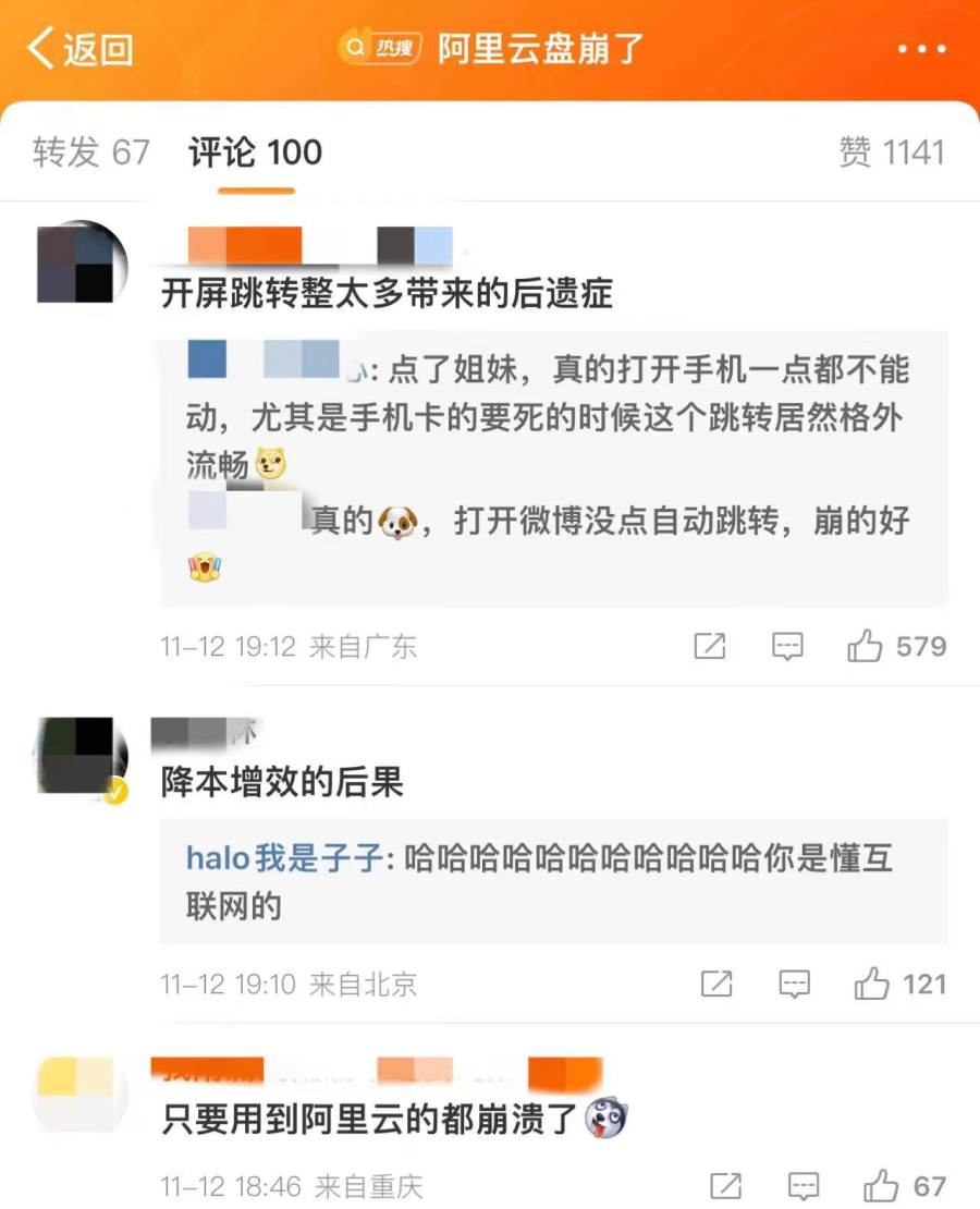 11月12日18时许,阿里云疑似发生大规模故障的消息开始在微博上刷屏,“阿里云盘崩了”“淘宝又崩了”“闲鱼崩了”“钉钉崩了”等话题相继登上热搜,阿里系诸多产品受到影响。