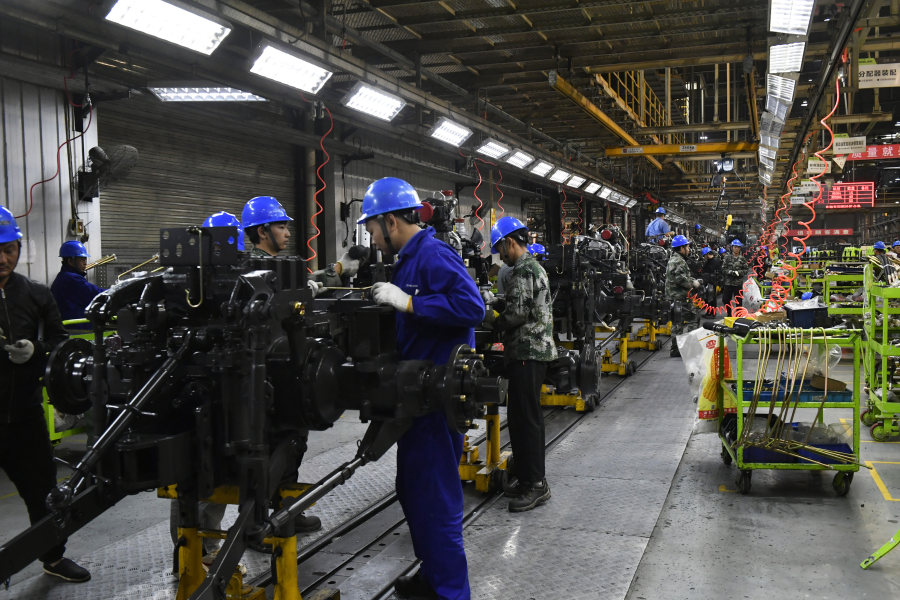 流水线上正一派忙碌状态。员工们有条不紊地进行装配、调试等组装作业,落实每日生产任务,确保来年春耕市场需求。