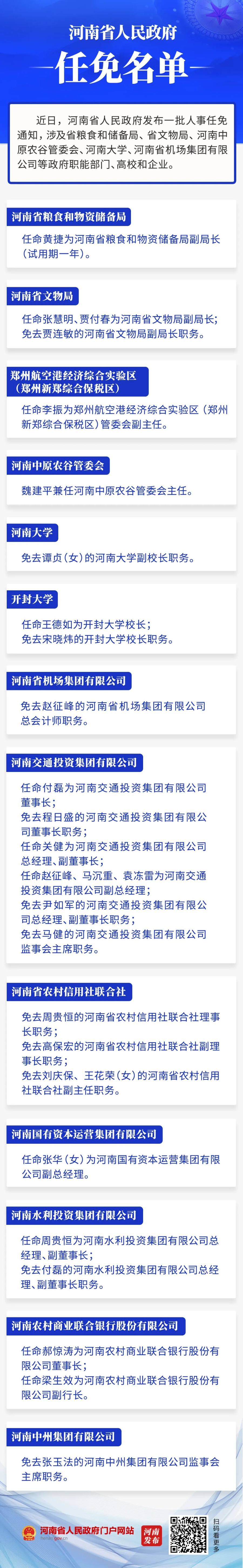 河南省政府新任免一批干部