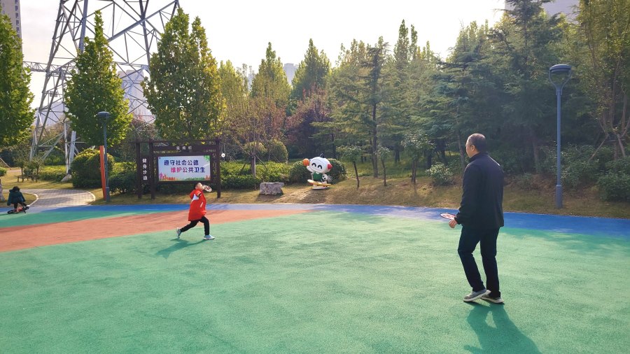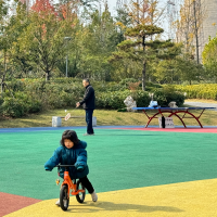 11月14日上午,记者走进园区,随处可见的卡通形象雕塑吸引着小朋友们拍照打卡。彩色的塑胶跑道舒适柔软,足球场上一群孩子正在尽兴玩耍,处处充满了欢乐与和谐。