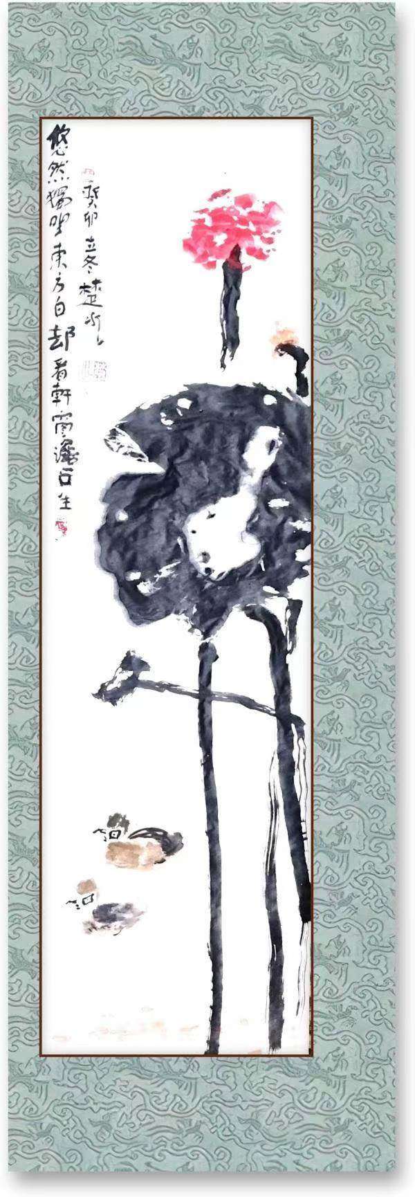 画画,特别是中国的写意画,需要耐心。比如今天画的这片荷叶,想洒点雨滴上去,以显残荷秋雨之后的沧桑。然后,洒上去之后,是用纸蘸干呢?还是用纸轻轻地吸干?当然,最好的办法就是让其慢慢自然渗干。水有表面张力,渗透于纸张的过程,就是古人所指的屋漏痕的过程。天然造化,非人力雕饰而能得之。