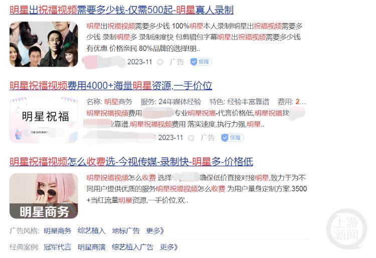 网上有大量出售“明星祝福视频”的公司。 截屏图