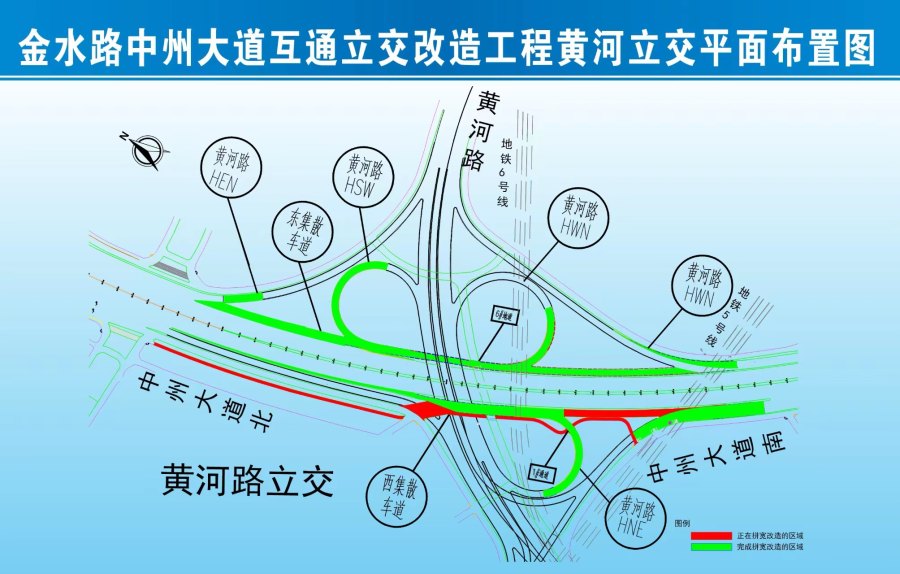 截至目前,涉及郑州市金水路立交拼宽和改造的5条匝道以及黄河路立交改造的7条匝道,共12条匝道全部改造完成投入使用。