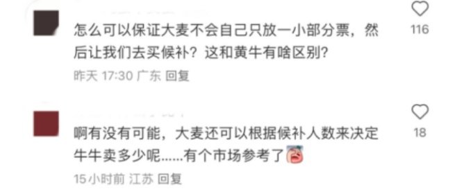 平台会不会出现故意限制出票数量,把本应正常放出的票留到候补环节加价出售?对于网友的疑问,平台并未做出正面回应。