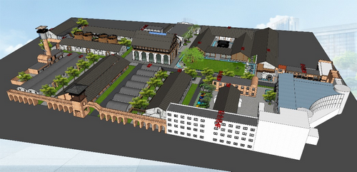 更新内容:主要包括①老旧建筑更新改造;②根据整体经营及业态空间需求局部新建建筑;③场地景观设计及改造;④场地交通梳理;⑤无法改造利用建筑拆除。