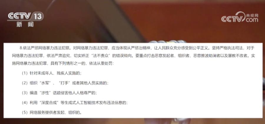 2023年9月,最高人民法院、最高人民检察院、公安部印发了《关于依法惩治网络暴力违法犯罪的指导意见》。这会给网络暴力的治理带来怎样的变化?最高人民法院研究室主任周加海介绍: