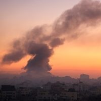 资料图:遭空袭后加沙城上空浓烟升腾。