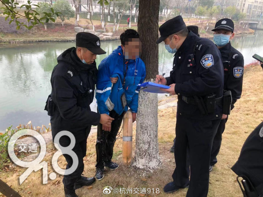 外卖员闯红灯被扣车后跳河,杭州交警:已进行心理疏导