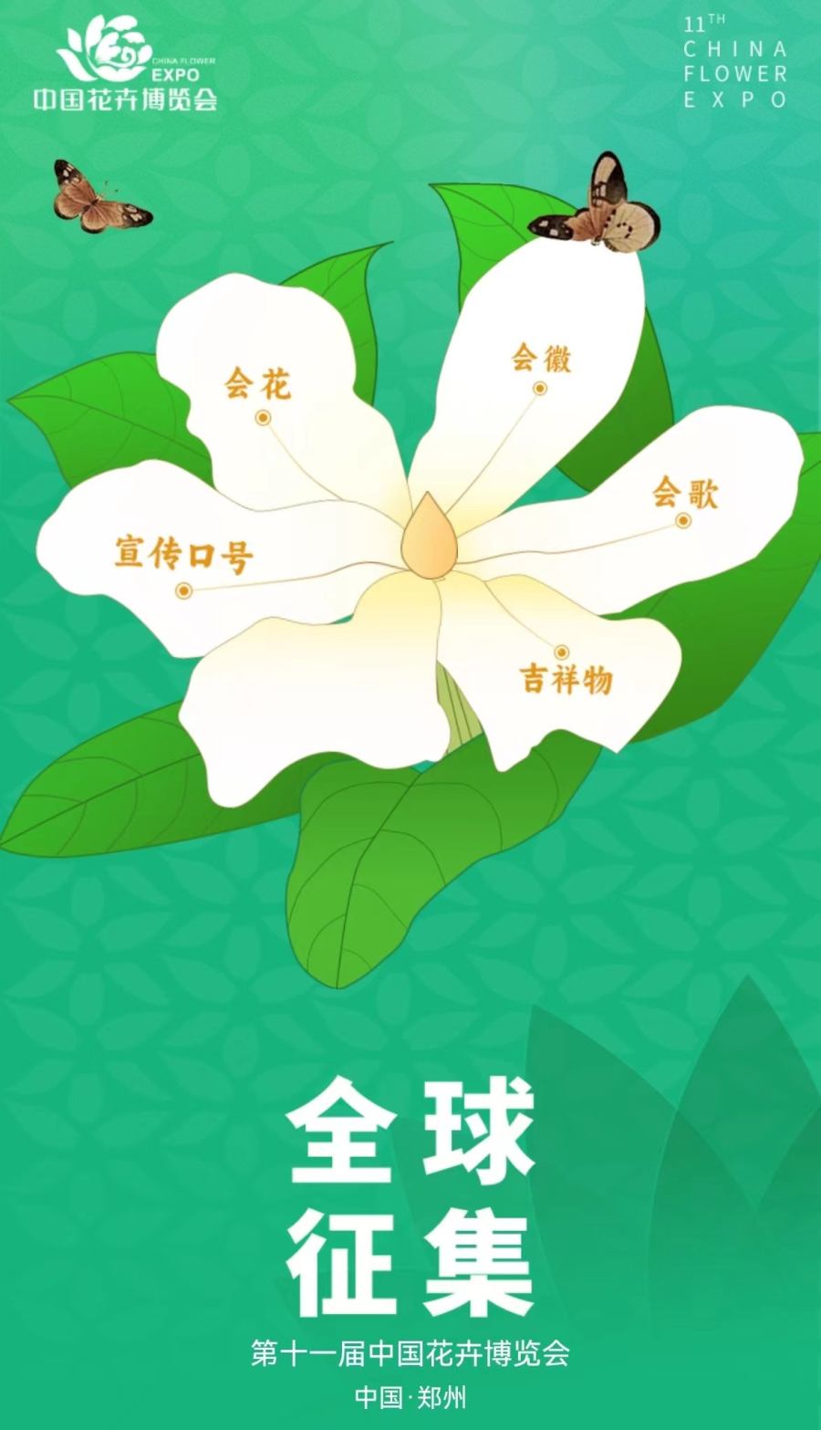 第十一届中国花卉博览会将于2025年在河南郑州举办,本届主题为“大河花正开 幸福满天下”。从即日起至2023年12月31日,花博会执委会室面向公众征集会徽、吉祥物、会花、会歌、宣传口号(征集公告详见:https://lyj.zhengzhou.gov.cn/gal/8015129.jhtml)。