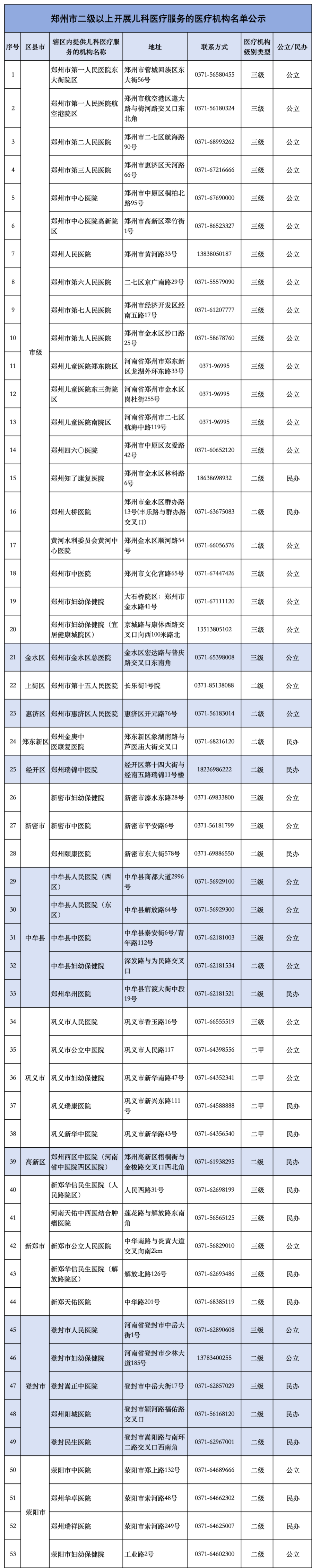 为更好地保障儿童就诊需求,方便儿童就近就医,现将郑州各区县(市)提供儿童诊疗服务的二级以上医疗机构名单公示如下: